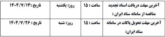 شرکت سهامی نمایشگاه بین المللی ج.ا.ایران در نظر دارد تجدید مناقصه عمومی دو مرحله ای فوق الذکر را از طریق سامانه تدارکات الکترونیکی دولت برگزار نماید. کلیه مراحل برگزاری از دریافت اسناد تجدید مناقصه تا ارائه پیشنهادات مناقصه گران و بازگشایی پاکت ها از طریق سامانه تدارکات الکترونیکی دولت (ستاد) به آدرس www.setadiran.ir انجام خواهد شد و لازم است مناقصه گران در صورت عدم عضویت قبلی، مراحل ثبت نام در سایت مذکور و دریافت گواهی امضای الکترونیکی را جهت شرکت در مناقصه محقق سازند.