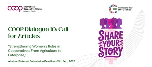 اتحادیهی بینالمللی تعاون آسیا و اقیانوسیه (ICA-AP) با افتخار از همهی صاحبنظران، محققان، فعالان و اعضای تعاونی دعوت میکند تا برای دهمین شمارهی COOP Dialogue مقاله، موردکاوی، مصاحبه یا نوشتههای تحلیلی دربارهی نقش و رهبری زنان در تعاونیها ارسال کنند.